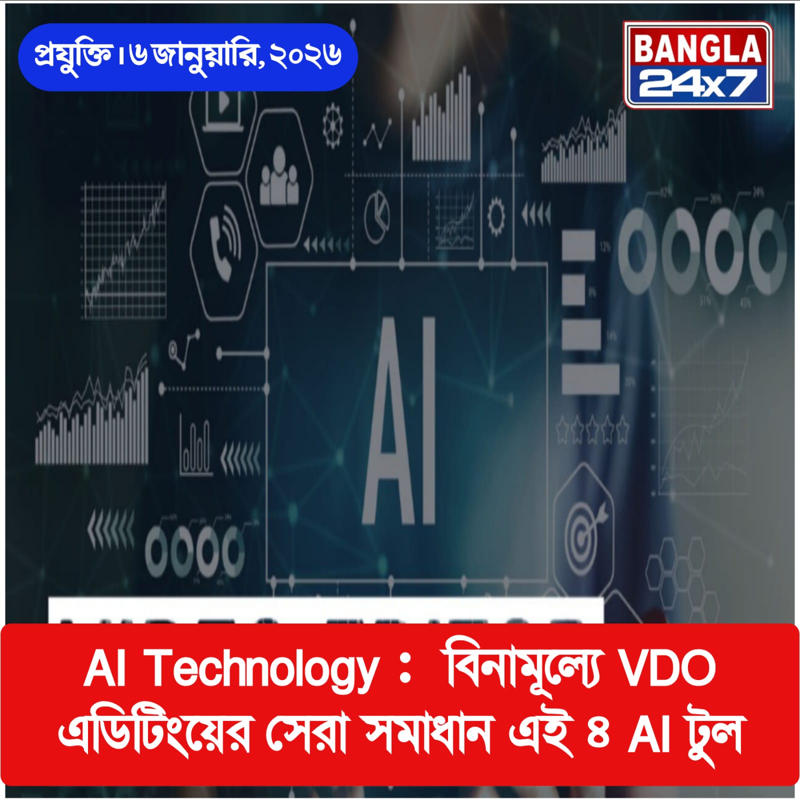 Bangla24x7 Desk: AI Technology : বিনামূল্যে এডিটিংয়ের সেরা সমাধান এই ৪ AI টুল। সময়ের সঙ্গে সঙ্গে সোশাল মিডিয়া শুধুই বিনোদনের জায়গা নয়, বরং হয়ে উঠেছে আয়ের এক বড় মাধ্যম। ফেসবুক, ইউটিউব, ইনস্টাগ্রামের মতো প্ল্যাটফর্মে কনটেন্ট তৈরি করেই বহু মানুষ স্বাবলম্বী। কনটেন্ট তৈরির পথে সবচেয়ে বড় বাধা হয়ে দাঁড়ায় ভিডিও এডিটিং। ভালো ক্যামেরা, দামি সফটওয়্যার- সবকিছুতে বড় অংকের বিনিয়োগ করা সকলের পক্ষে সম্ভব নয়। জানেন কি, এই সম*স্যার সহজ সমাধান হতে পারে AI ভিডিও এডিটিং টুল? এমন কিছু টুল রয়েছে, যেগুলি ব্যবহার করে একেবারে বিনামূল্যে নিজের পছন্দ মতো ভিডিও এডিট করা সম্ভব। তাহলে চলুন জেনে নেওয়া যাক তেমনই কয়েকটি জনপ্রিয় AI টুল সম্পর্কে।